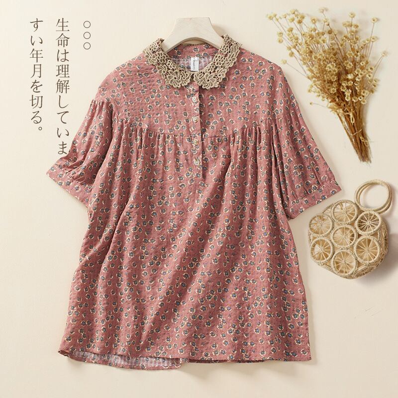 初回送料無料夏新作トップス ブラウスTシャツコットンとリネンの半袖トップス
