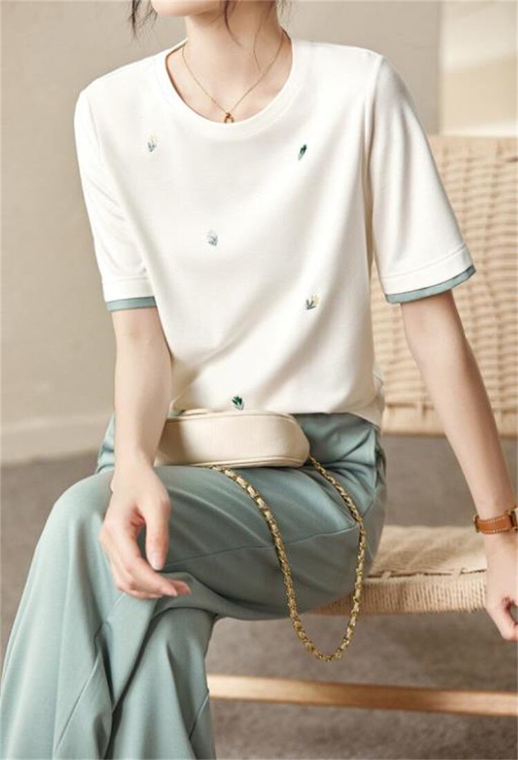圧倒的な真実好評 トップス 半袖 運動 新作 2024春秋 スリム スラックス ロングパンツ 2点セット