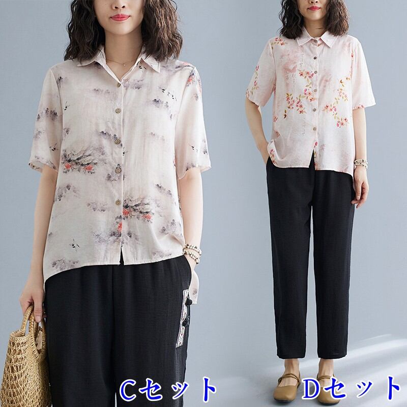初回送料無料 夏レディースファッション カジュアル 半袖シャツ トップス パンツ 上下セット