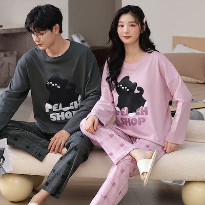 新作登場 パジャマ カップル 上下セット 春秋冬 長袖 綿 大きいサイズ レディース/メンズ ルームウェア 部屋着 寝巻き 単品売り 男女 orange