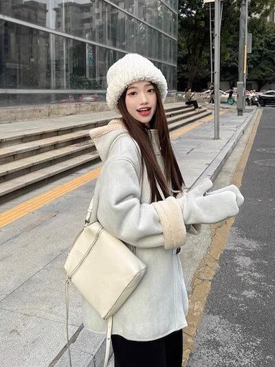 秋冬防寒 あったかアウター 韓国風 スタイルアップ かわいい ブルゾン ファー系ファッション 裹起毛大人ゆったりカジュアル ストリート サイズ レディース ムートン ゆるダボ シルエット学生通学丈