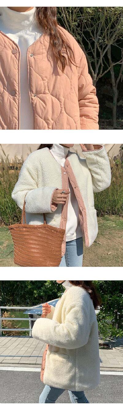 ジャケット レディース 秋 冬 リバーシブル ボア ノーカラージャケット キルティングコート ボア ジャケット ショート丈 ボア アウター ふわふわ もこもこ 冬 秋 オーバーサイズ 大きいサイズ