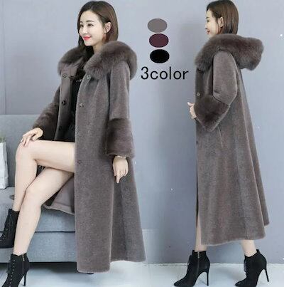 フェイクファーコートレディース毛皮コート冬服フード付きもこもこ暖かいロング丈ジャケット韓国風アウター上品大人着痩せ304050カジュアルパーディーきれいめ上品大人あたたかい