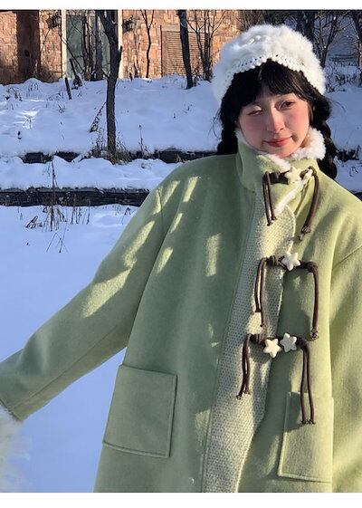 ステンカラーコート 冬服 レディース ジャケット ロングコート 膝丈 もこもこ 森ガール アウター 小柄 可愛い 学生 通学 日常着 着せ 女の子 長袖 ポケット付き 厚手 防寒 寒さ対策 秋冬 柔ら