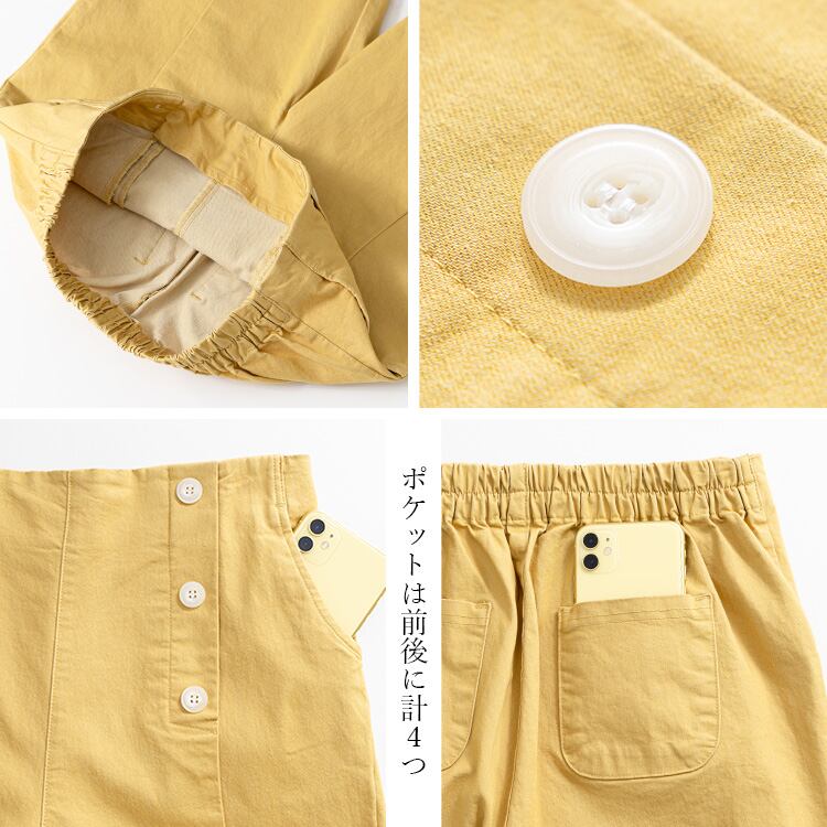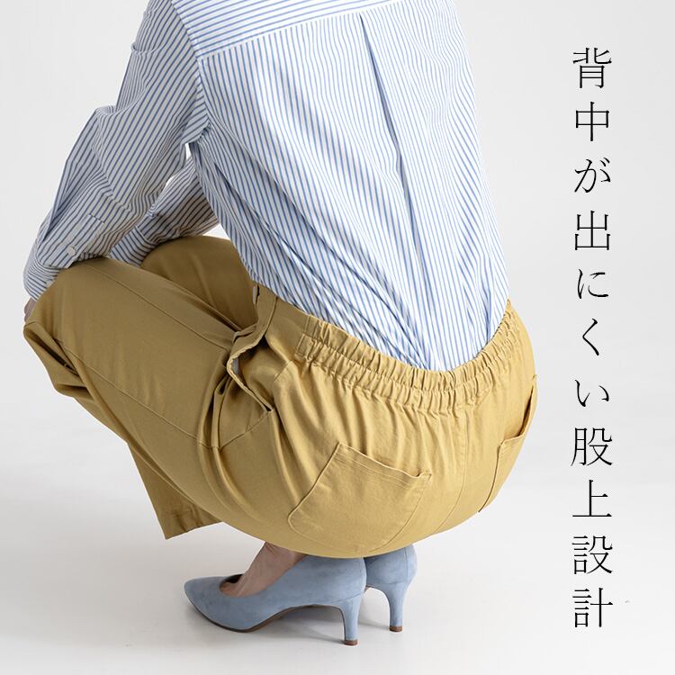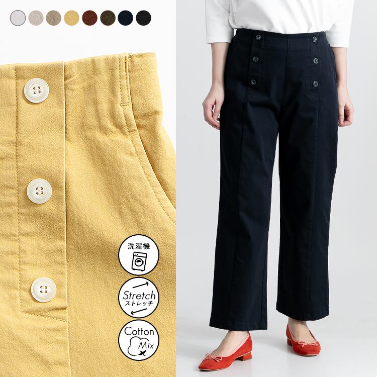 綿混ストレッチツイルカラーパンツ 無地 洗濯機 綿混 ウエストゴム 美脚 ワイドパンツ チノパンツ