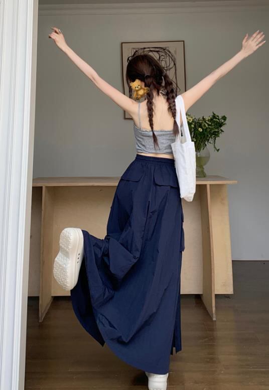 2024春秋新作 ボトムス 女 レディース ハイウエスト ロングスカート 台型スカート