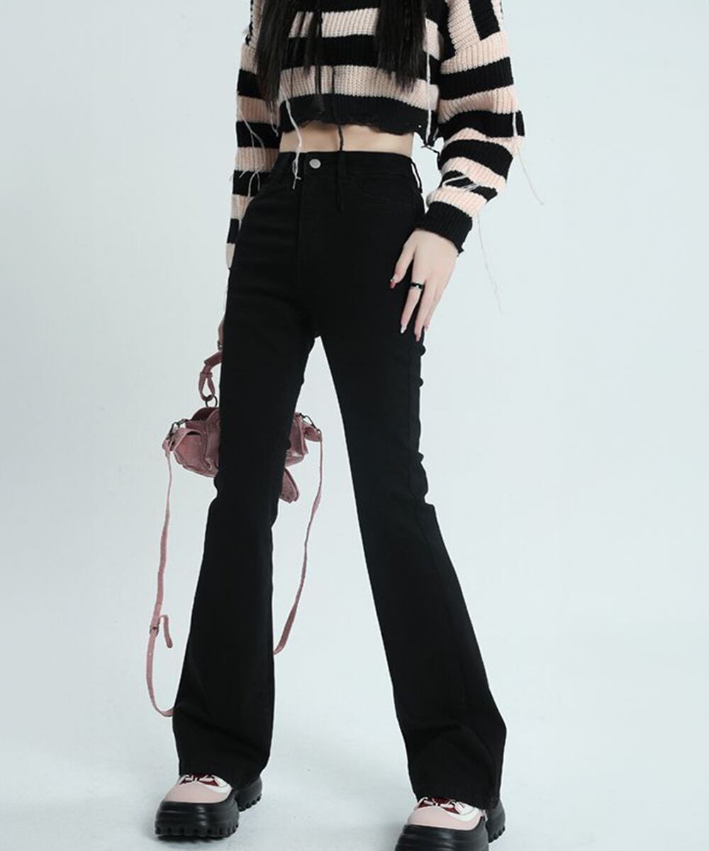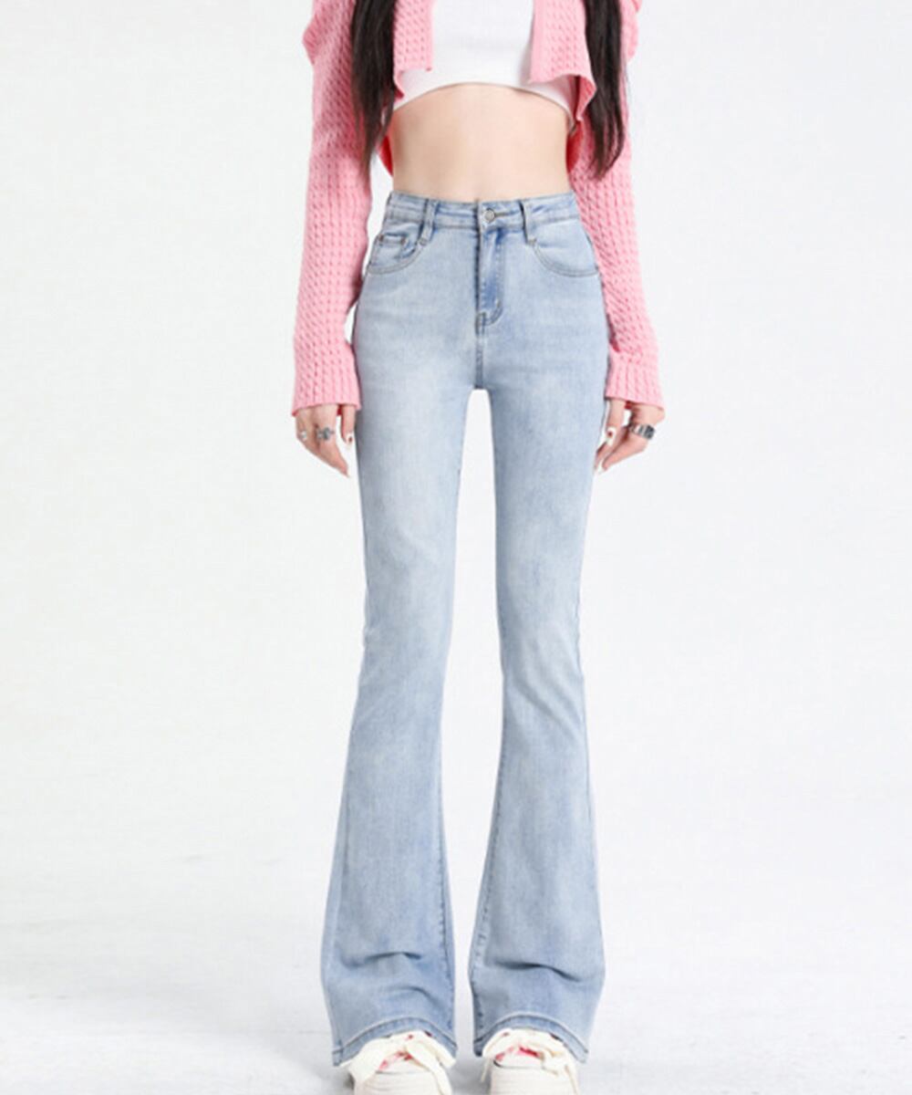 【日本倉庫即納】 セミフレアデニムパンツ 美脚デニムパンツ