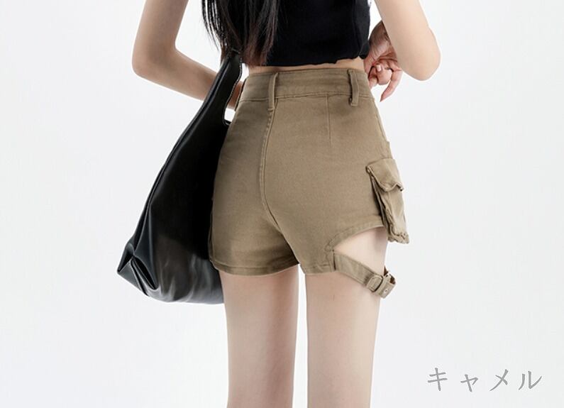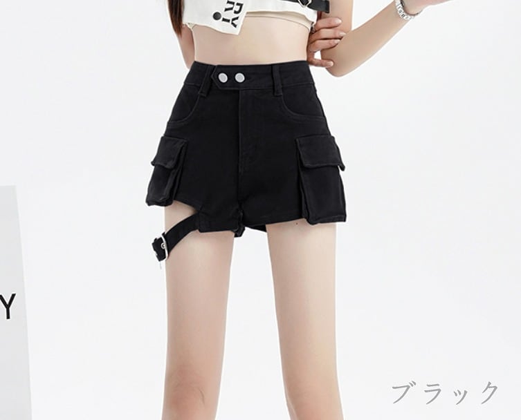 全3色 デニムショートパンツ ショーパン ジーパン 切り替え スリム 着痩せ デニム シンプル