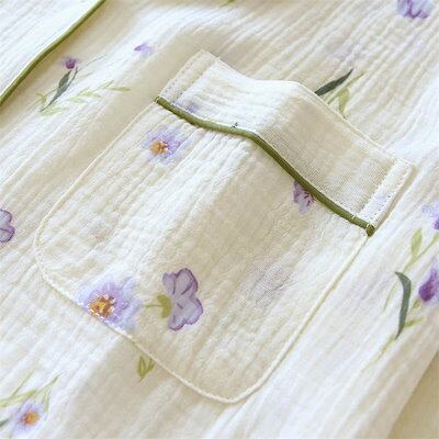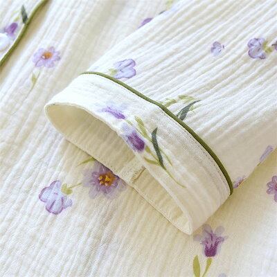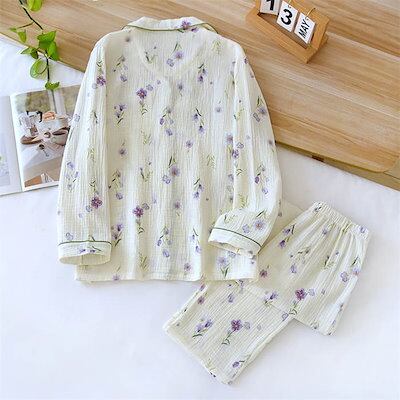 ガーゼ パジャマ レディース ルームウェア パンツ 花柄 総柄 春 秋 ガーゼコットン キーネック フリル チェック 春秋 長袖 綿 部屋着 セットアップ 2点セット ナイト 寝間着 寝巻き 上下セッ