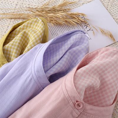 ガーゼ パジャマ レディース ガーゼコットン ルームウェア パンツ 春 秋 春秋 切り替え 長袖 ダブルガーゼ 2重ガーゼ チェック 綿 部屋着 セットアップ 2点セット ナイト 寝間着 寝巻き 上下