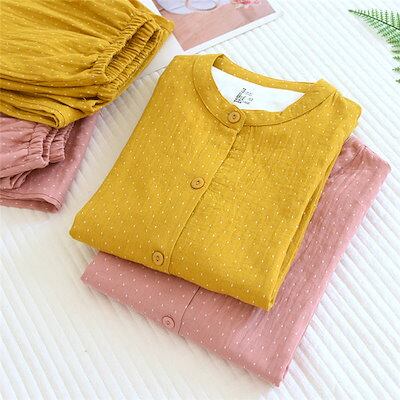 ガーゼ パジャマ レディース ダブルガーゼ ドット 総柄 ルームウェア 春 秋 冬 長袖 ロングパンツ 部屋着 セットアップ 2点セット 寝間着 寝巻き 上下セット 前開き 大きいサイズ 大人 フェミ