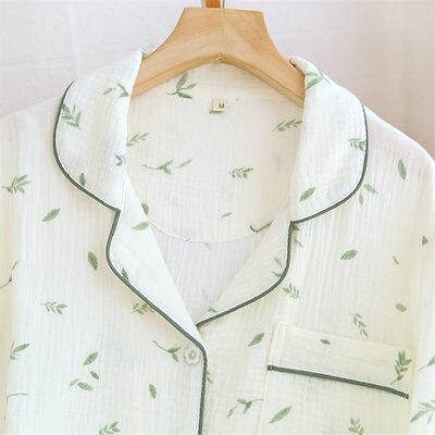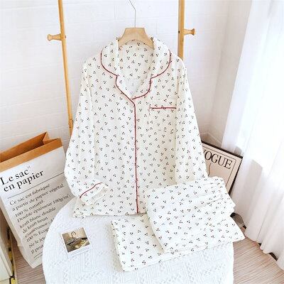 ガーゼ パジャマ レディース ルームウェア パンツ 春 秋 ガーゼコットン vネック 総柄 配色 春秋 長袖 ダブルガーゼ 2重ガーゼ 綿 部屋着 セットアップ 2点セット ナイト 寝間着 寝巻き 上