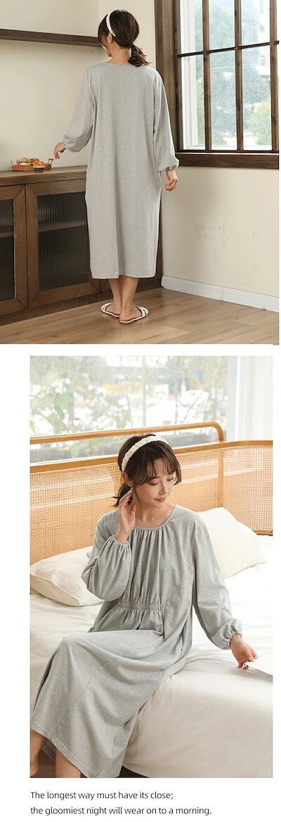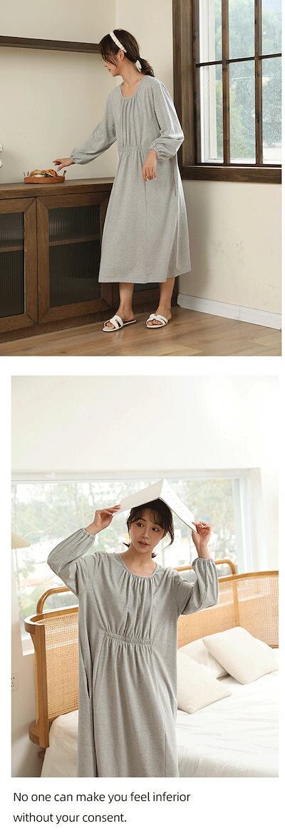 ワンマイル長袖 ワンピース パジャマ ルームウェア マキシワンピース TシャツワンピースUネック マキシ丈 レディース ワンピ 春 夏 秋 冬 ロングワンピース きれいめ 綿 インナー ルームウェア ワンマイル
