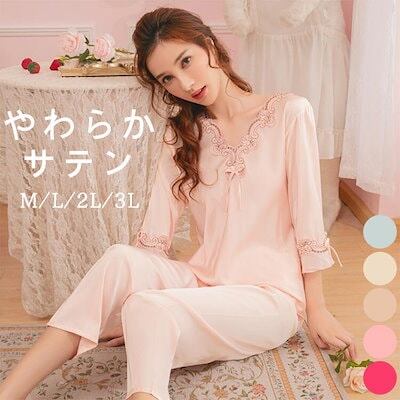 パジャマ レディース ルームウェア 春夏秋 サテン長袖 かわいい 前開き 上下セット ナイトウェア パジャマ 部屋着 女子 セクシー ランジェリー 大人 ベビードール 過激 スリップ 大きいサイズ レ