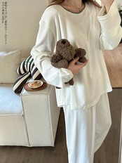 ルームウェア パジャマ レディース 綿混 コットン カラー切り替え セットアップ 長袖 トップス&ロングパンツ ジョガーパンツ 回復 休養 部屋着 柔らかい スウェット 上下セット パジャマ 春 秋