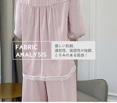 ルームウェア レディース 春夏秋 サテン パジャマ ナイトウェア 前開き 上下セット 長袖&長ズボン かわいい 部屋着 通気性 上品な光沢感 なめらかな肌触り カジュアル 着痩せシルエット イベントM