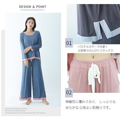 部屋着 ルームウェア レディース 夏 セットアップ 上下セット 長袖 長ズボン ルームウエア ロングパンツ 春夏 肌触りがよい セットアップ レディース パジャマ シンプル 無地 かわいい リラックス