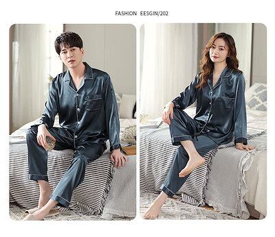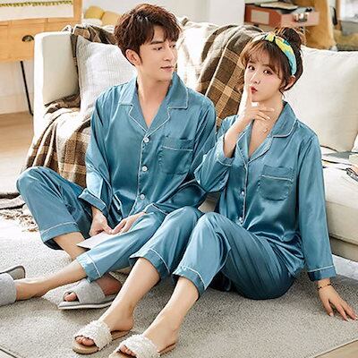 サテン パジャマ ルームウェア メンズ 男女春夏秋 長袖 かわいい 前開き 上下セット ナイトウェア パジャマ 部屋着 女子 レディース おしゃれ かわいい 無地 大人 カジュアルッ