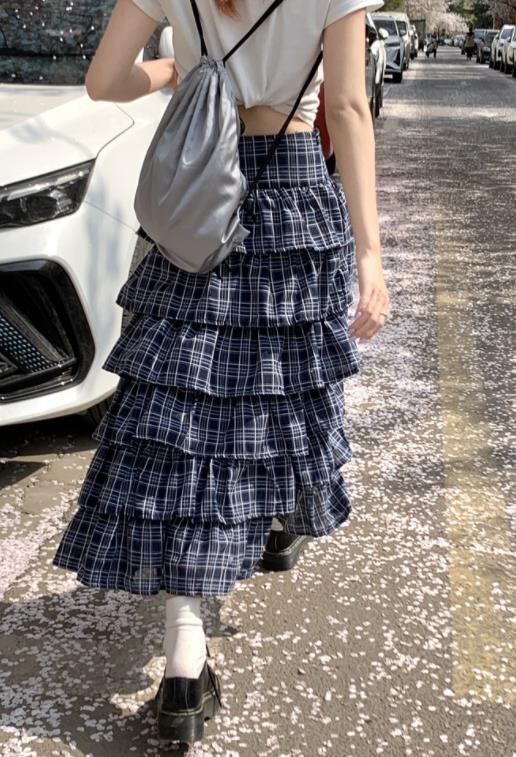 2024春夏新作 ボトムス 女 レディース ハイウエスト チェック柄 ロングスカート 台型スカート