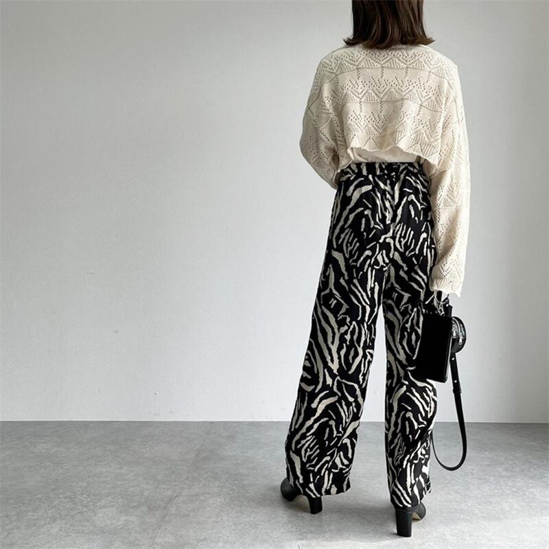 レディースパンツ ハイウェスト ゆったり 春夏 ins デザイン ゼブラ柄