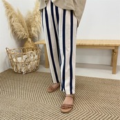 レディースパンツ ハイウェスト ゆったり 春夏 ins デザイン ストライプ柄