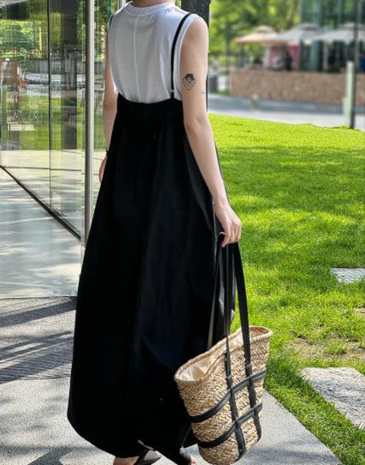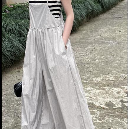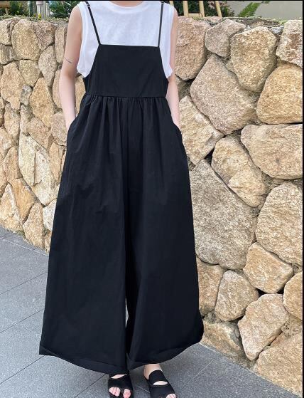 u24592 レディース ワイド ボトムス ロング丈 2024春夏新作 サロペット カジュアル