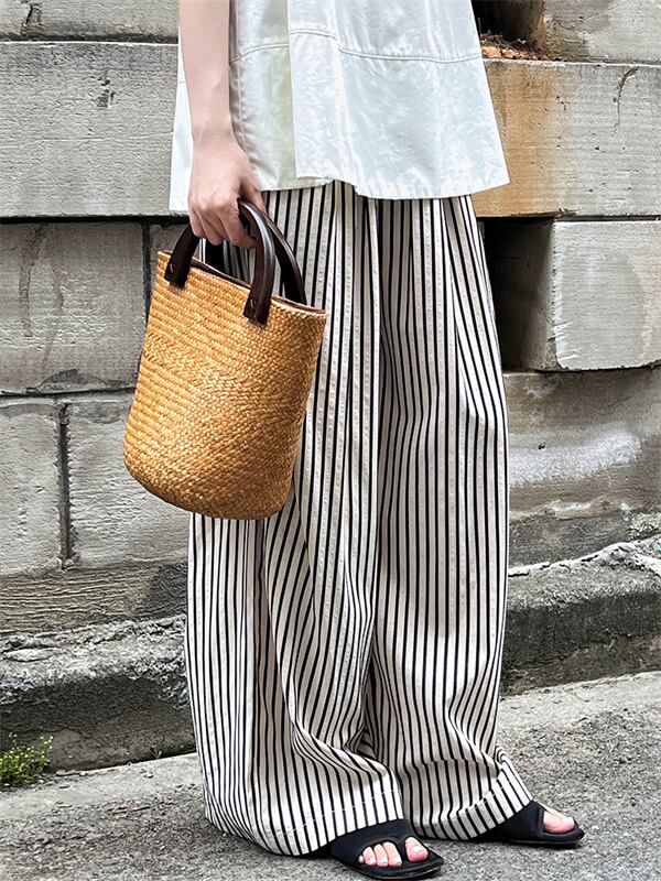 u24591 レディース ワイド ボトムス ロング丈 2024春夏新作 ボーダー カジュアル
