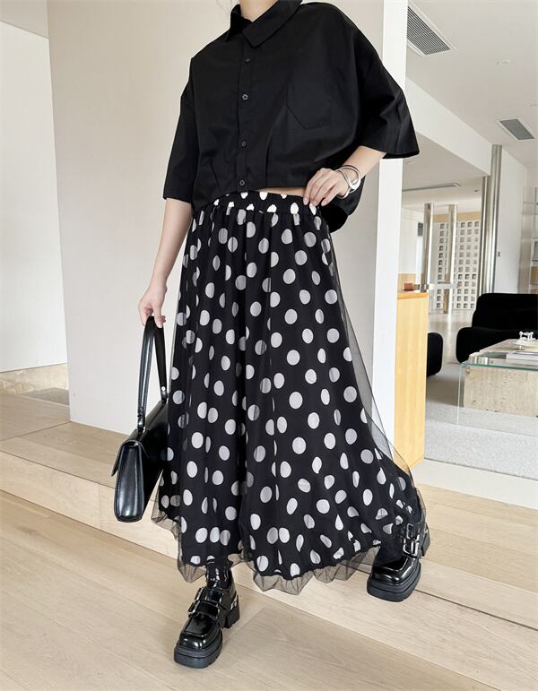 u24555 レディース ボトムス スカート 2024春夏新作 ハイウエスト ボーダー ドット