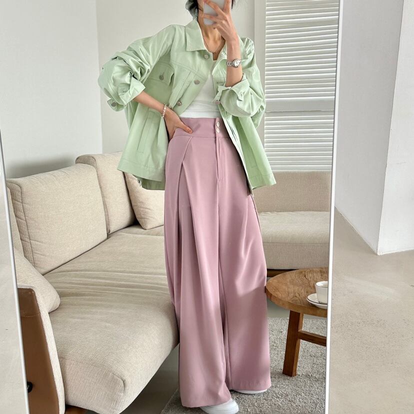 スラックス ワイドパンツ レディース ins ゆったり 春夏 ファッション