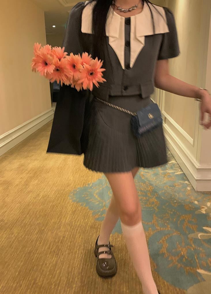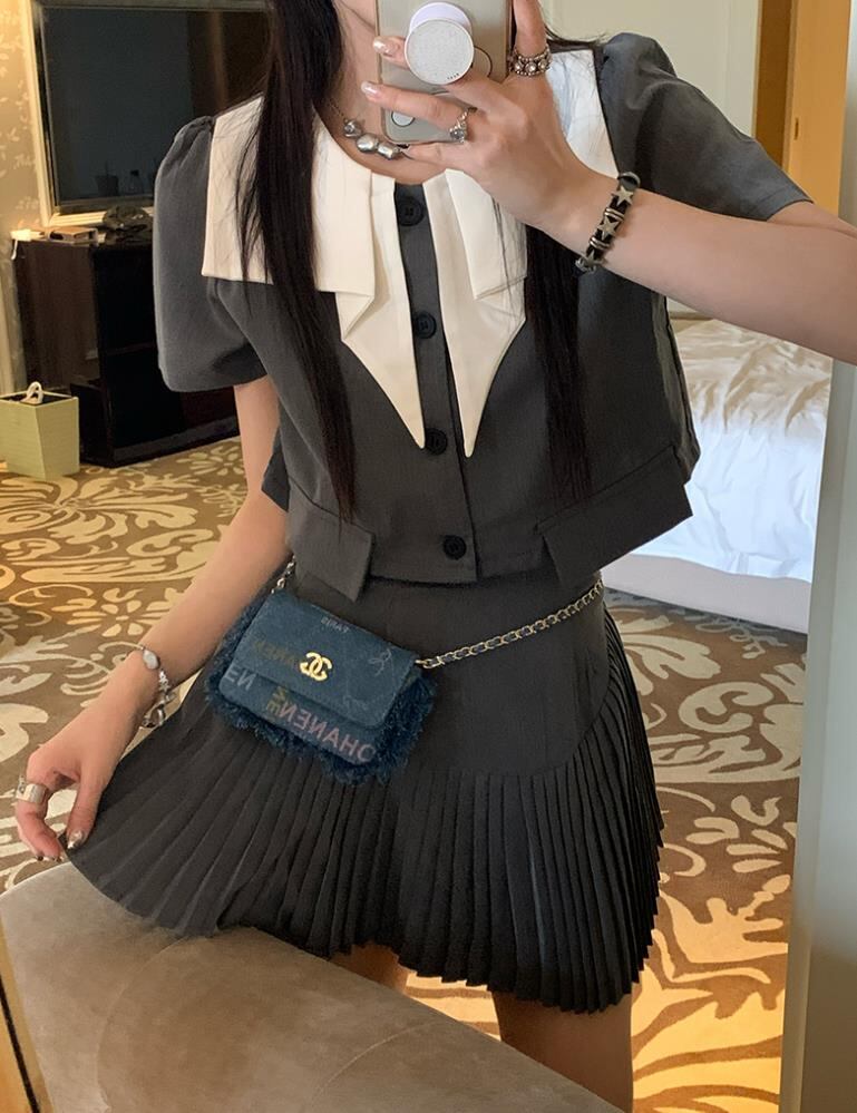【2点セット】春夏新作 ボトムス トップス 女 レディース ハイウエスト ミニ スカート + シャツ S-L