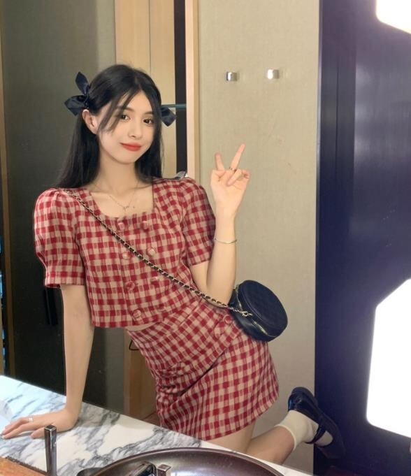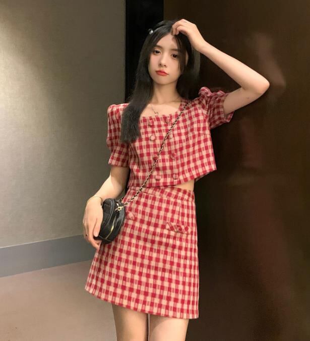 【2点セット】春夏新作 ボトムス 女 レディース チェック柄 ハイウエスト ミニ スカート 台型スカート S-L
