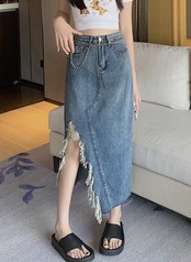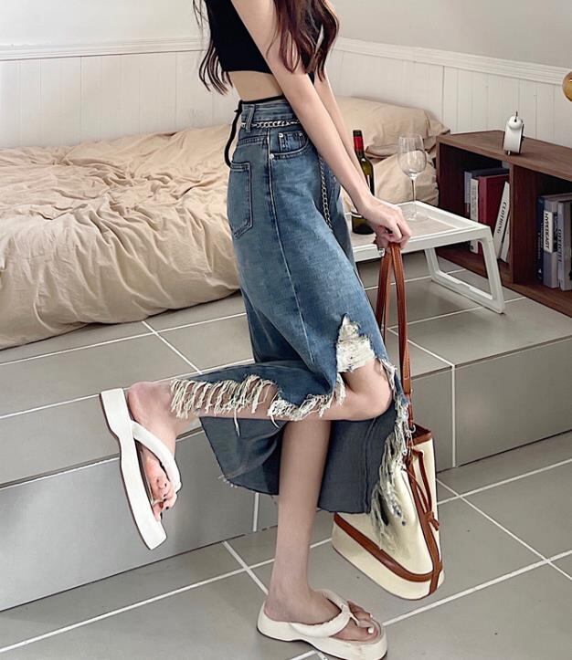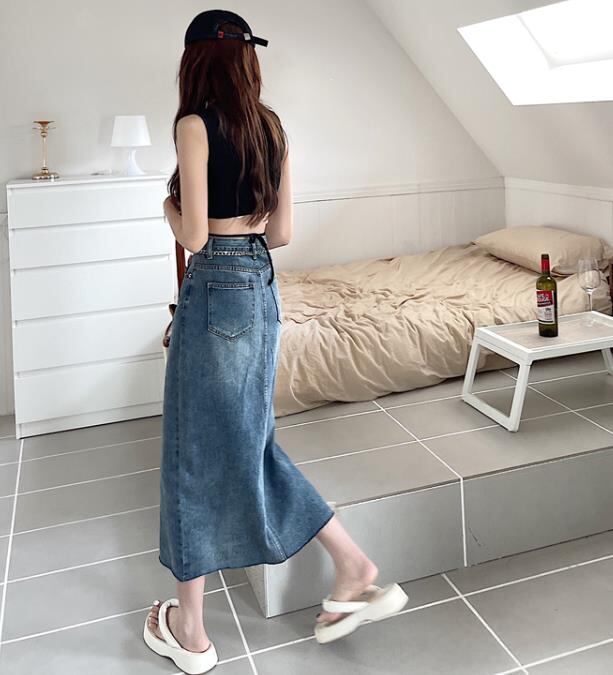 2022春夏新作 ボトムス 女 レディース デニム ハイウエスト ロングスカート 台型スカート S-XL