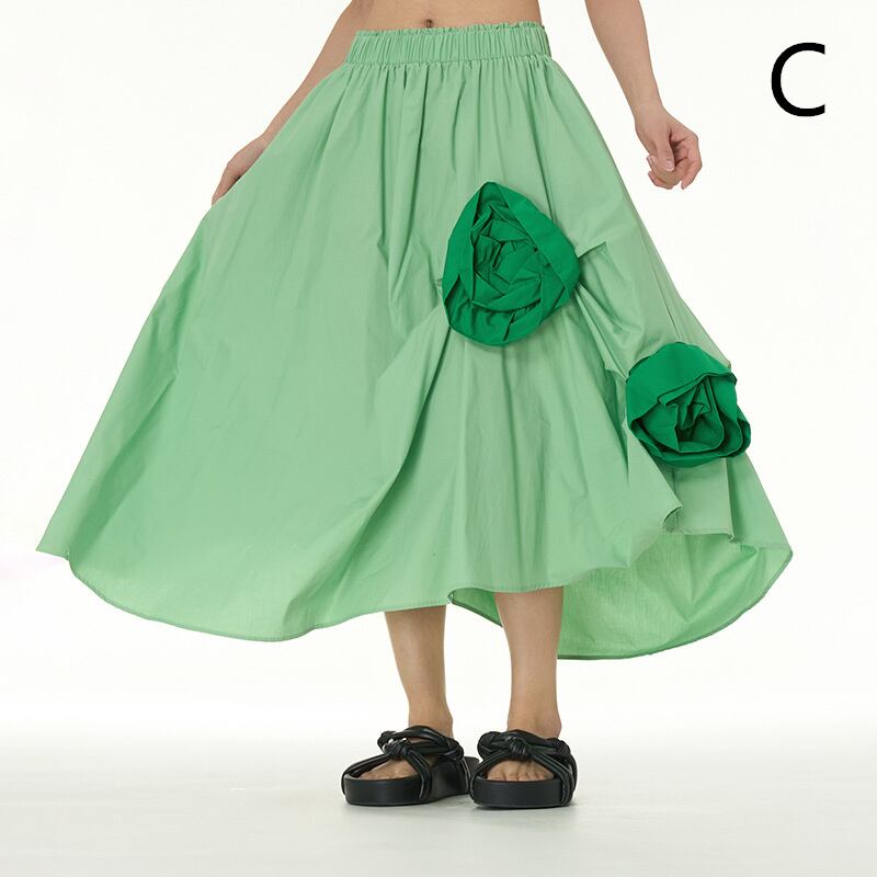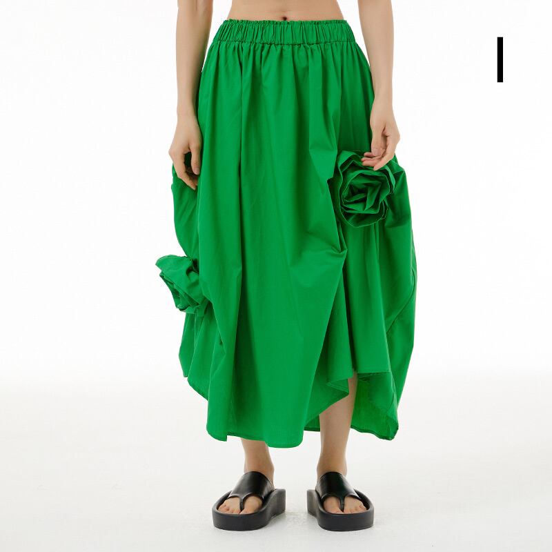 u23561 レディース ボトムス ロングカート 花 2024春夏新作 ハイウエスト