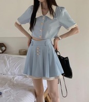 P-春夏新作 ボトムス 女 レディース ハイウエスト ミニスカート 台型スカート + シャツ 2点セット