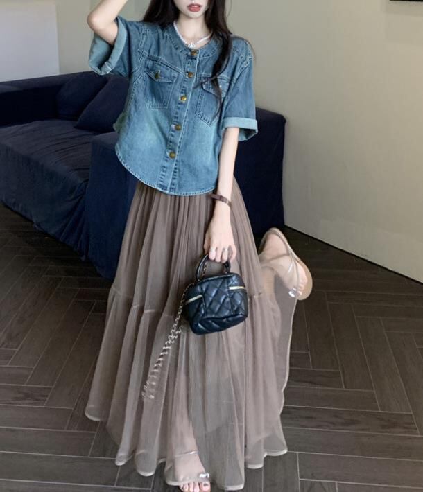 春夏新作 ボトムス 女 レディース ハイウエスト チュール ロングスカート 台型スカート セット S-L