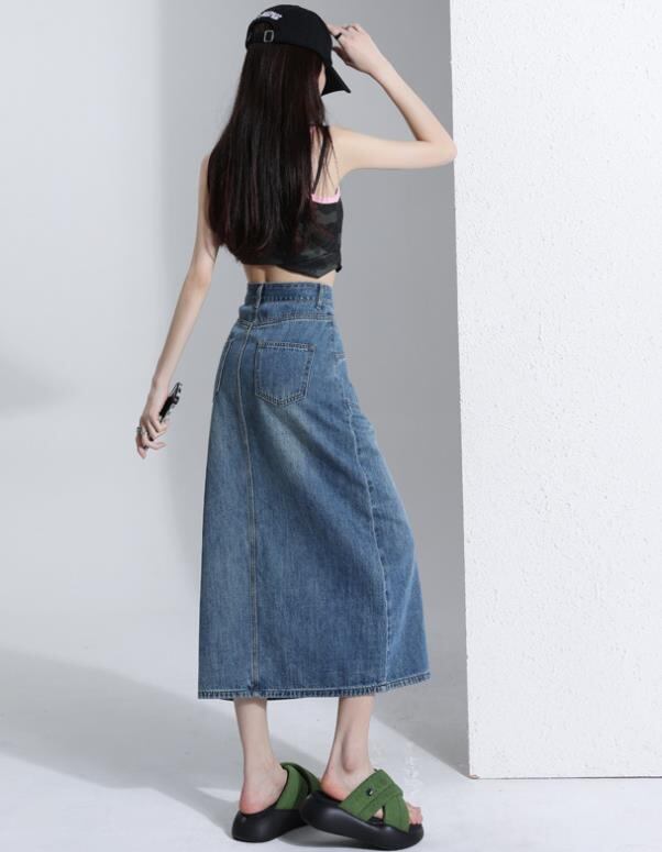 2023春夏新作 ボトムス 女 レディース ハイウエスト デニム ロングスカート 台型スカート XS-XL