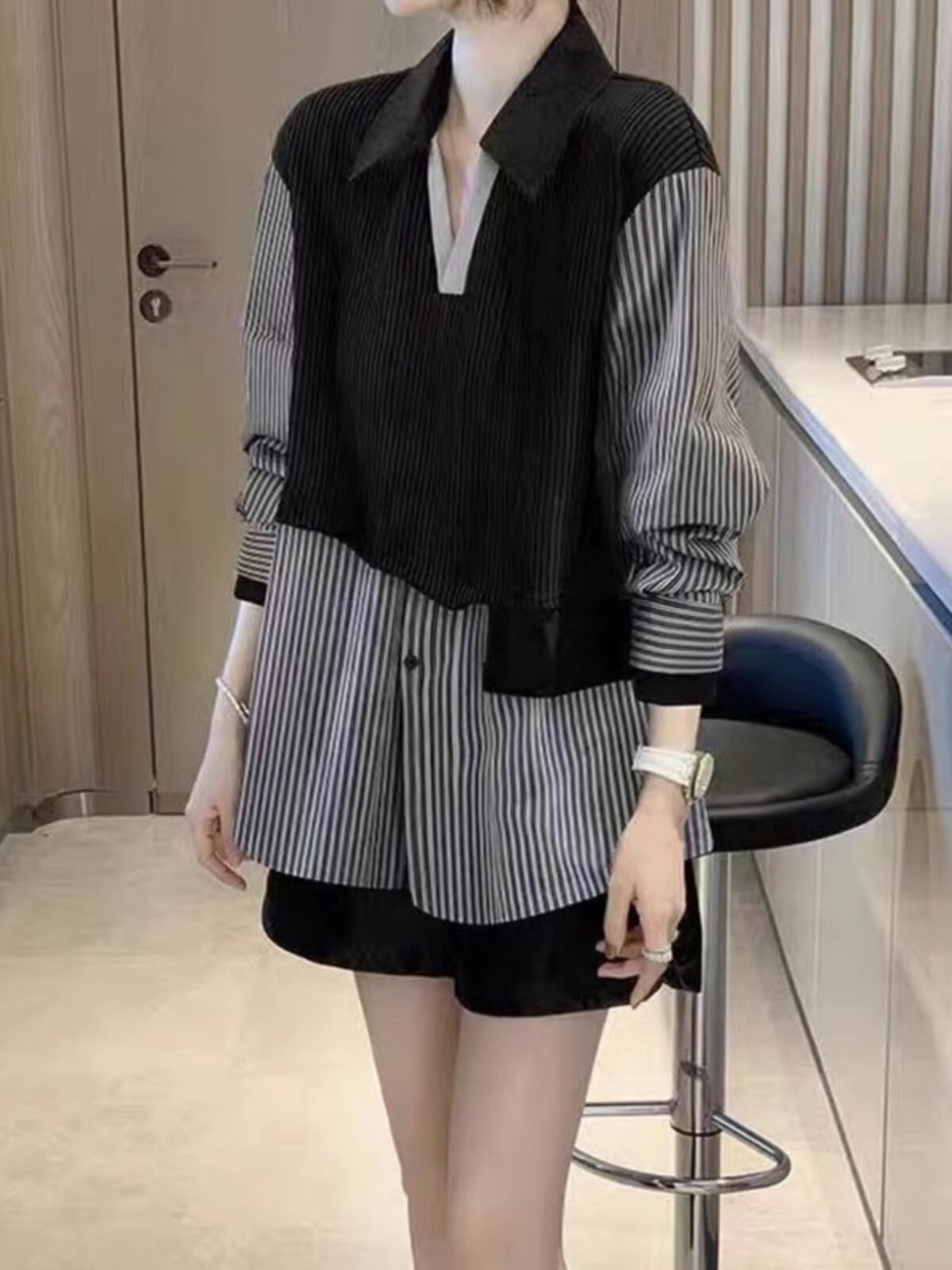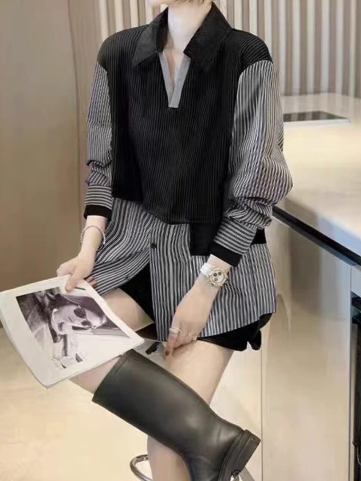 初回送料無料 春夏新作レディースファッション カジュアル フェイク2枚 長袖 シャツ トップス
