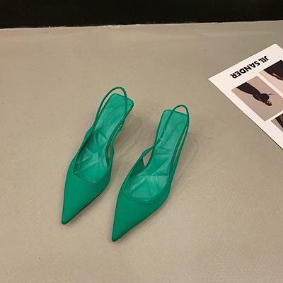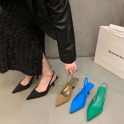 【人気商品】2025春と夏の高感度 パンプス ローヒール痛くない 韓国ファッション ハイヒール黒包頭サンダル妖精の靴はつま先の尖ったシングルシューズ