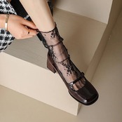 2025新入荷 韓国ファッション パンプス ローヒール痛くない 春夏レトロファッションワンストラップスクエアトゥハイヒール