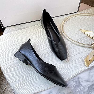 韓国ファッション ヒールパンプス 走れるパンプス ローヒール シューズ 新作 痛くない レディース フラットシューズ カジュアル 百掛け ラウンドトゥ 美脚 スタイルアップ!ヒールパンプス