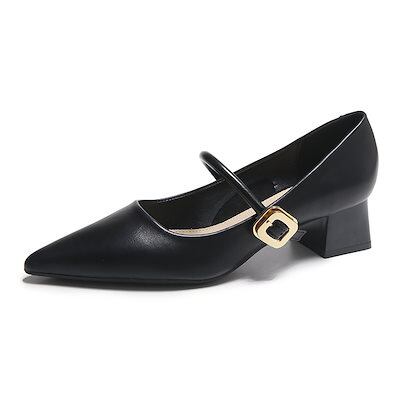 韓国ファッション ヒールパンプス 走れるパンプス ローヒール シューズ 新作 痛くない レディース 太ヒール 百掛けポインテッドトゥ 美脚 スタイルアップ!ヒールパンプス