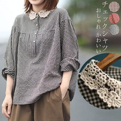 シャツ 長袖シャツ レディース シャツ ロングシャツ ブラウス レース トップス チュニック 長袖 シャツ 体型カバー 春 秋 チェック柄シャツ 秋物 ゆったり 上着 アウター ジャケット 春秋 お洒