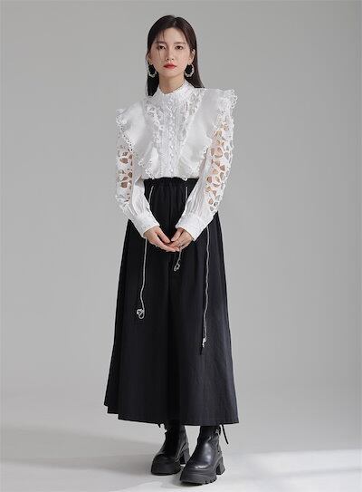 【J.Fashion】 2024春新品 お姫様 刺繍 ブラウス レース 透かし彫り スタンド襟 レディース シャツ 関連商品は店で購入可能