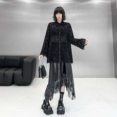 【送.料.無.料】【高.品.質人気商品!】【急速出荷】2025初春新作 レディース ブラウス おしゃれ 気質 シャツ ブラウス レース 透かし彫り 切り替え ロングブラウス 体型カバー 大きいサイズ