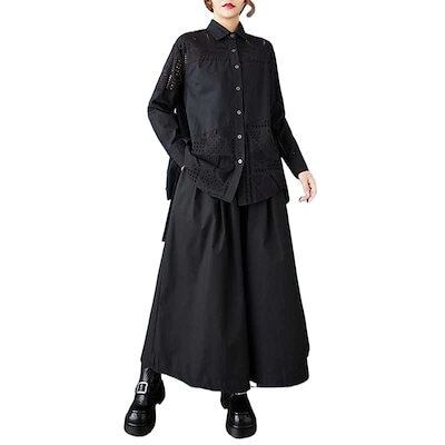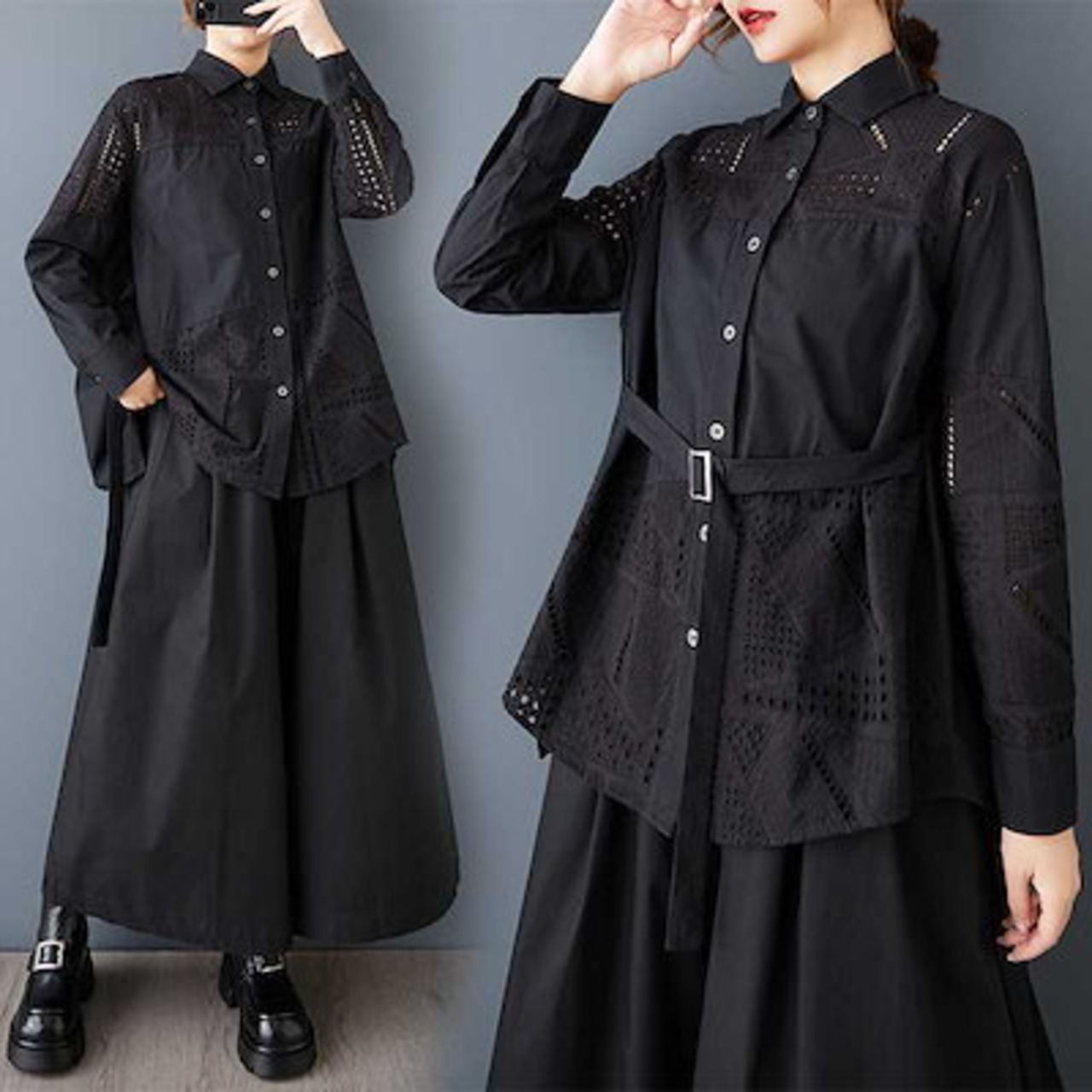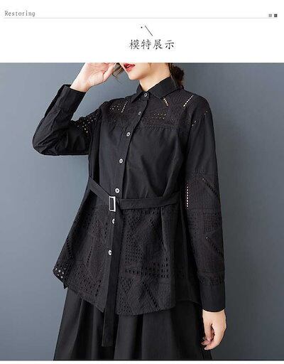 「ファットガール」 2025春 ロングシャツ レースドッキング ベルト付き 大きいサイズ 体型カバー レディース ブラウス メガ割