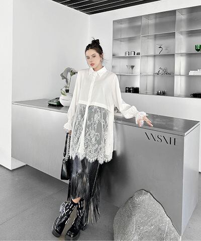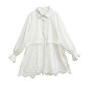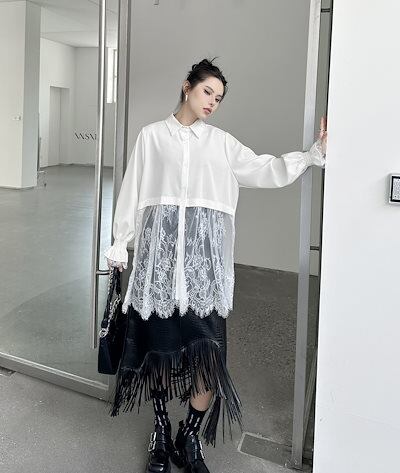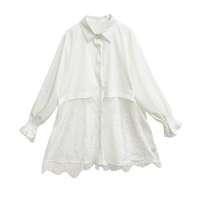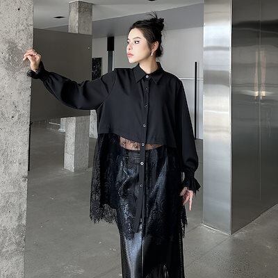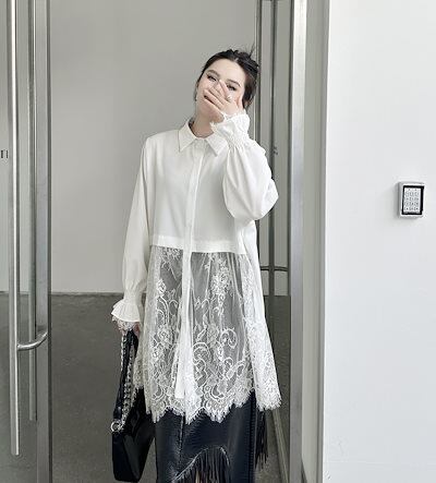 【J.Fashion】 2025春 レースドッキング チュニック ロングブラウス おしゃれ レディース 関連商品購入可能 メガ割