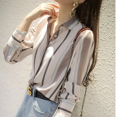 ブラウス Tシャツ 長袖ブラウス/ ストライプシャツ着痩せ上着レースVネックカジュアル 長袖シャツブラウス レディース 韓国ファッション プwwcs90母の日