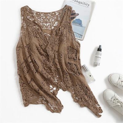 透かし編み カーディガン 夏 ベスト 前開き トップス ニット レディース レース 刺? 薄手 花柄 レイヤード アウター 羽織 透け感 ナチュラル キレイめ 爽やか ゆったり カジュアル かぎ編み