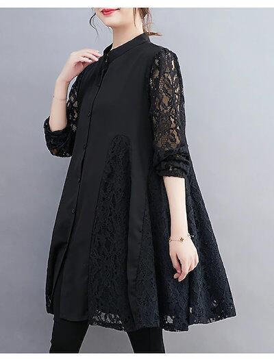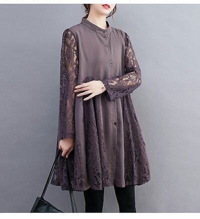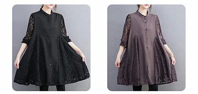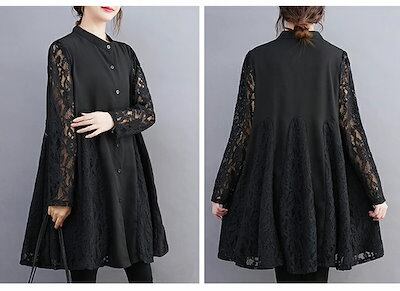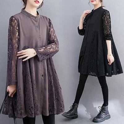 エレガントなレースを纏う切替フレアシャツチュニック レディース ワンピース 秋 プルオーバー トップス 長袖 ゆったり フレア 大きいサイズ チュニック 大人可愛い カットソー 柔らか カジュアル 体