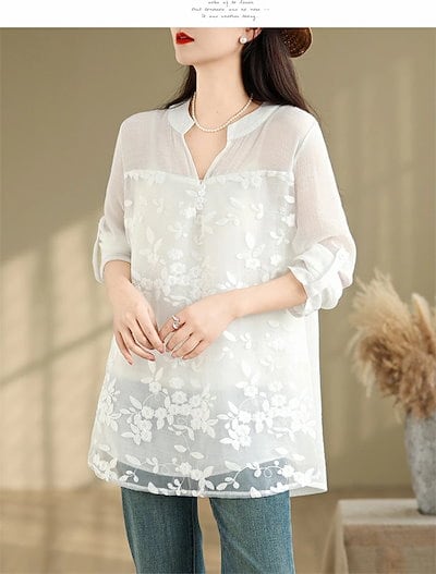チュニック 大人可愛い 春 夏 チュニック ブラウス 刺? 森ガール レディース 刺? レースtシャツ 長袖 ブラウス 大きいサイズ ゆったり 体型カバー vネック 大人可愛い 透け感 カットソー 夏